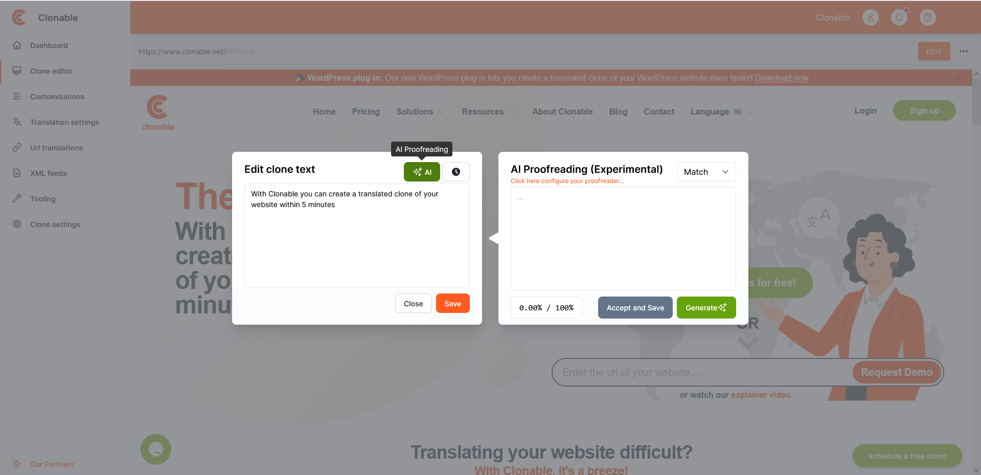 With Clonable's proofreader, you can have the translated texts of your clone proofread. Via the tooling page, you can set various settings for the proofreader so that the quality of the proofreading is adjusted to your preferences.